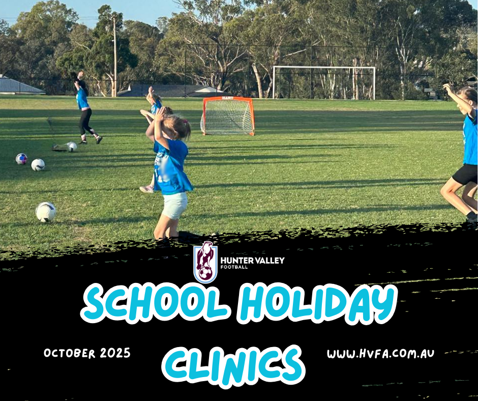 Hunter Valley Football Association will be conducting school holiday clinics this October School Holidays for players aged 8–11 years old. See below for dates, times and locations.